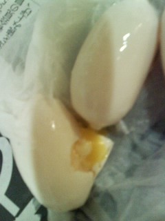 1個は割れて、生の卵がどろっと出ていました。
